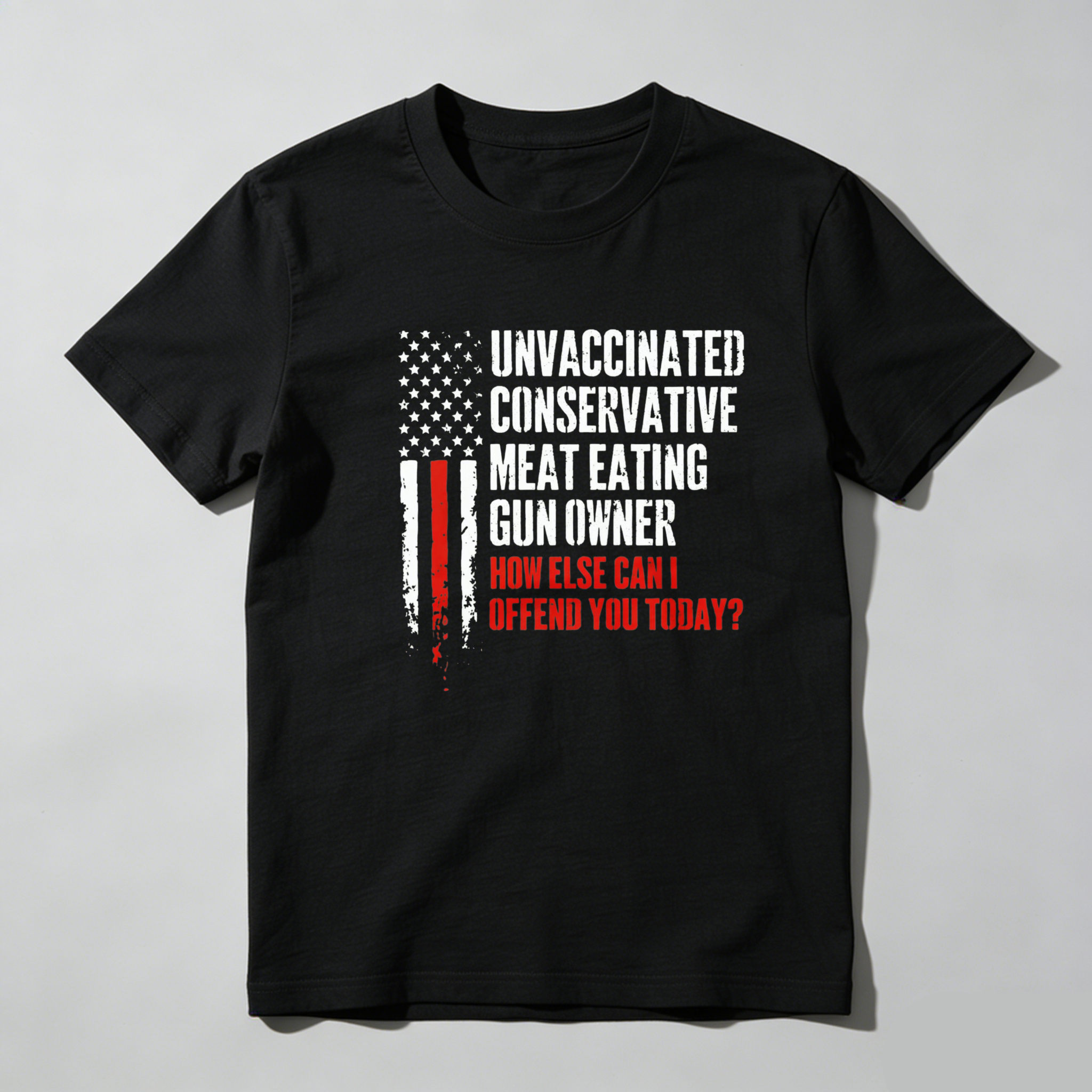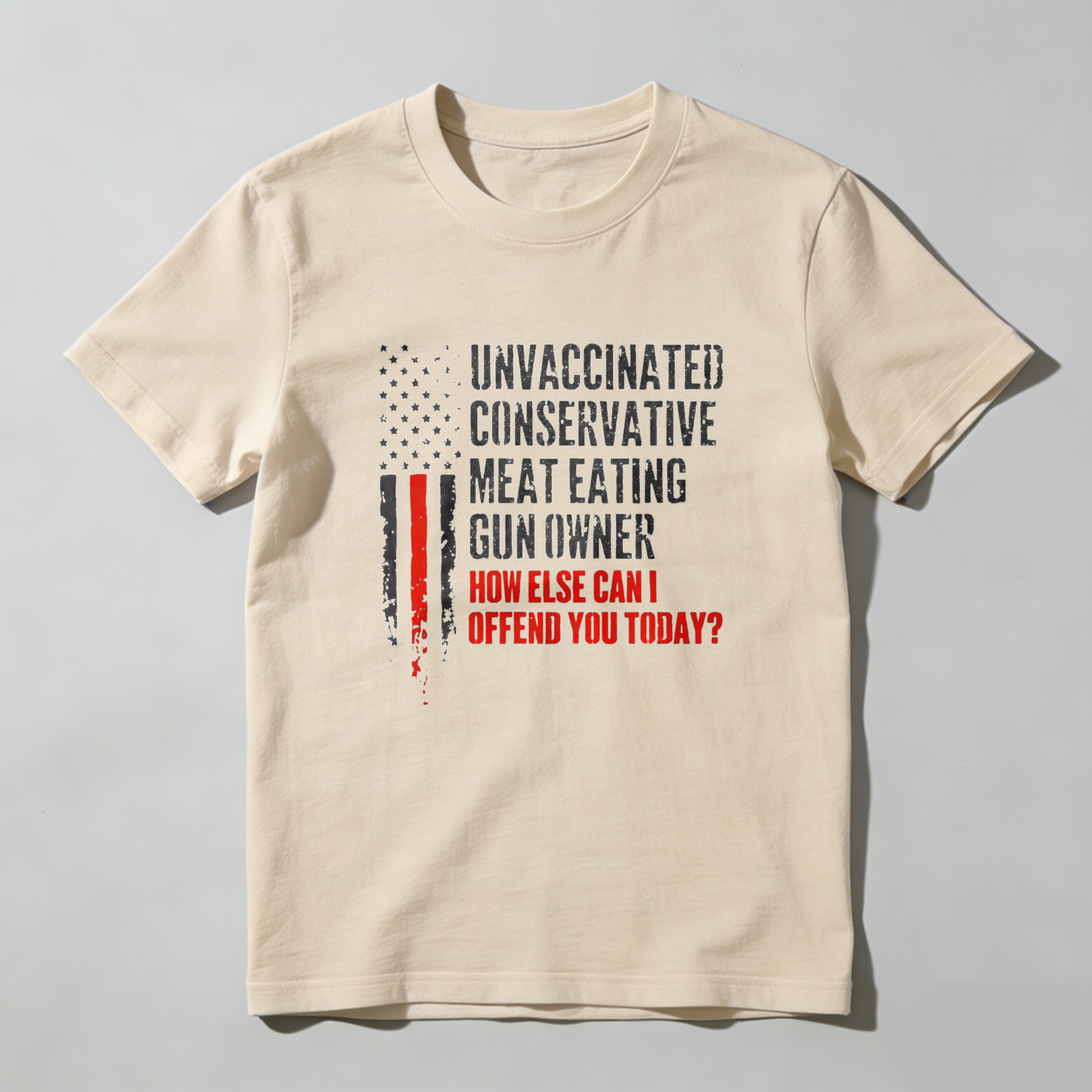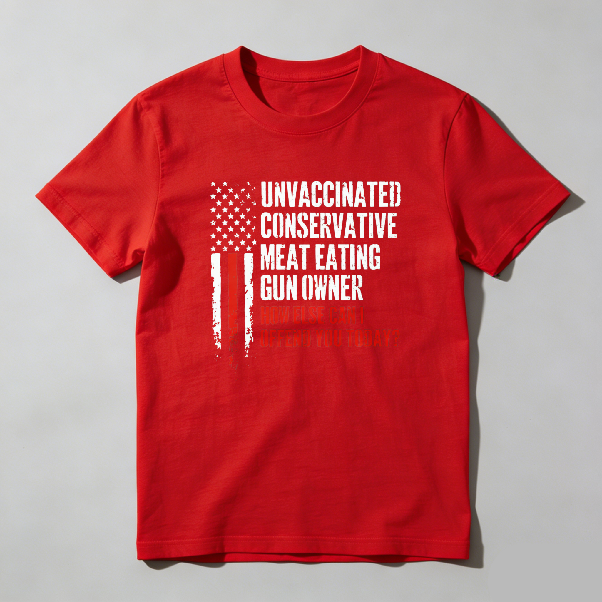 Teecurent Unvaccinated Conservative Meat Eating Gun Owner How Else Can I Offend You Today Pure Cotton Short Sleeve T Shirt