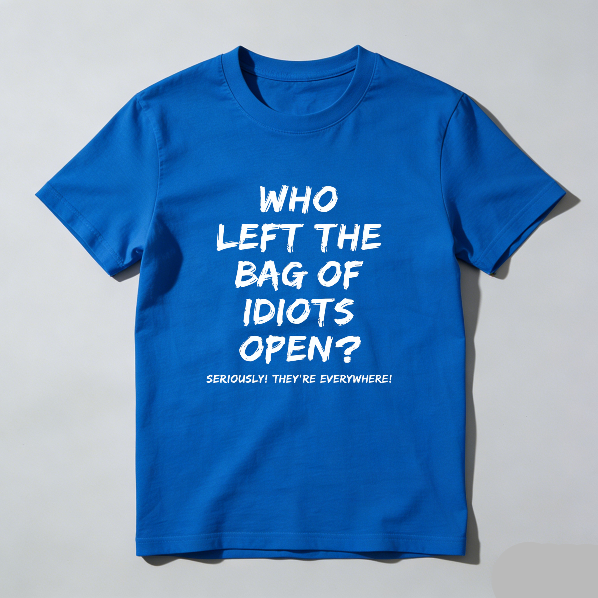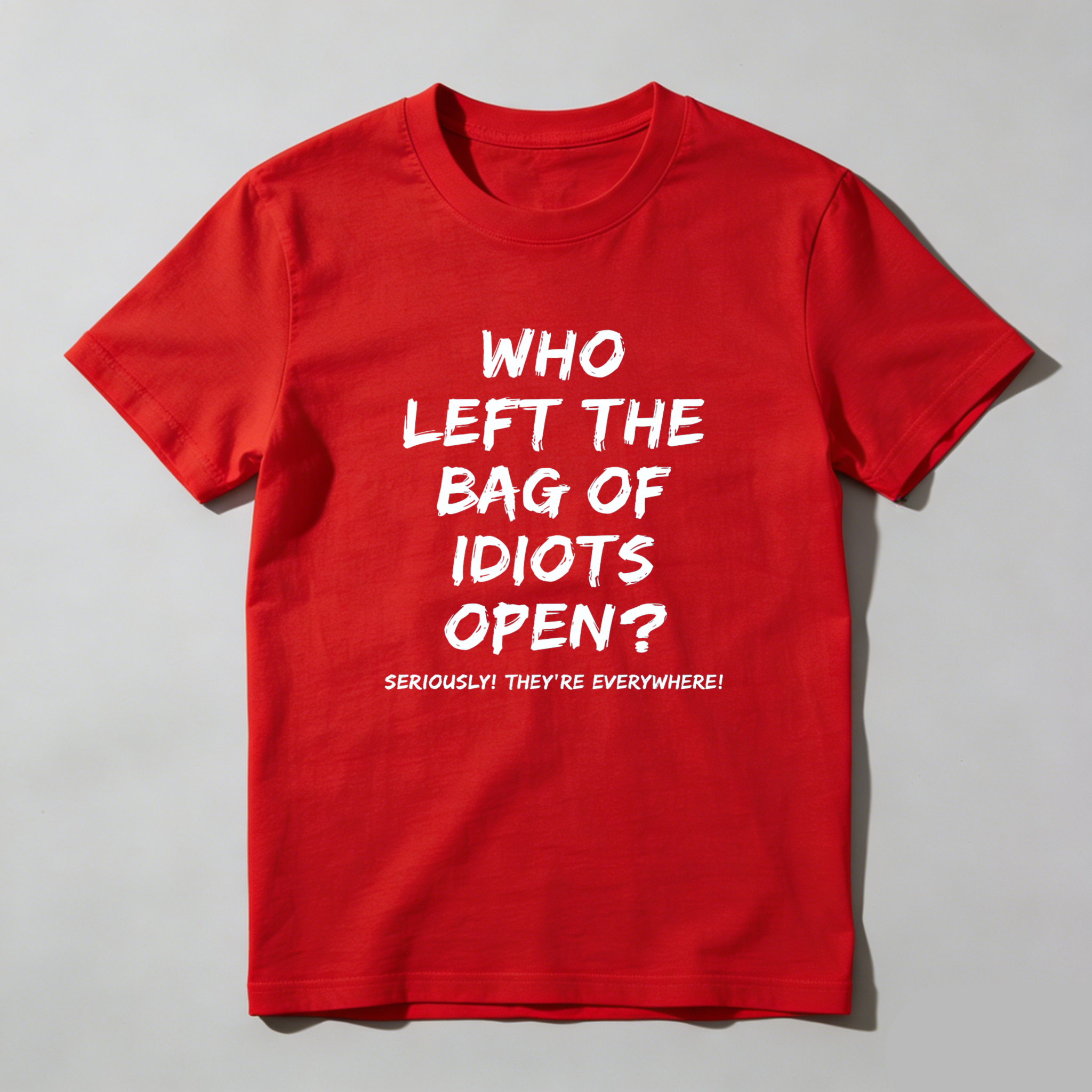 Teecurent Who Left The Bag Of Idiots Open Pure Cotton Short Sleeve T Shirt